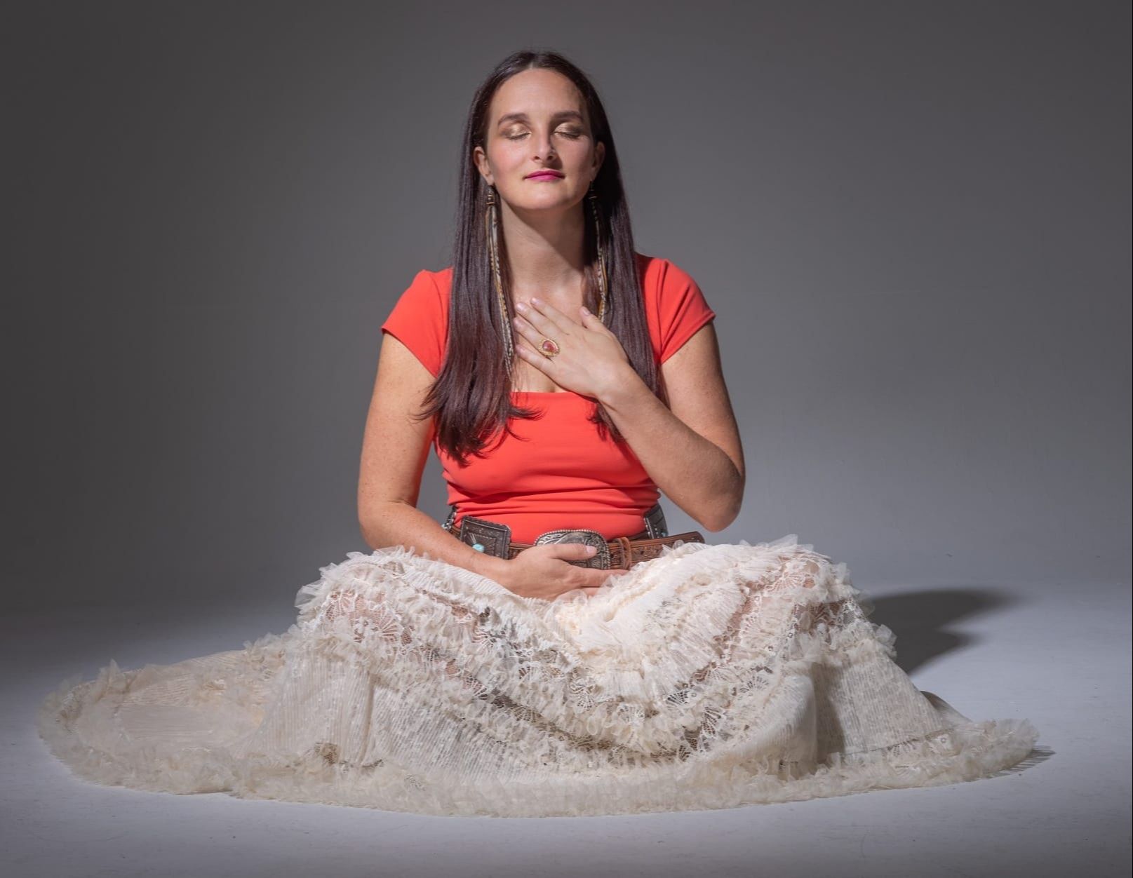 She uses her welcoming presence to invite whatever is living to be seen, heard, and witnessed.